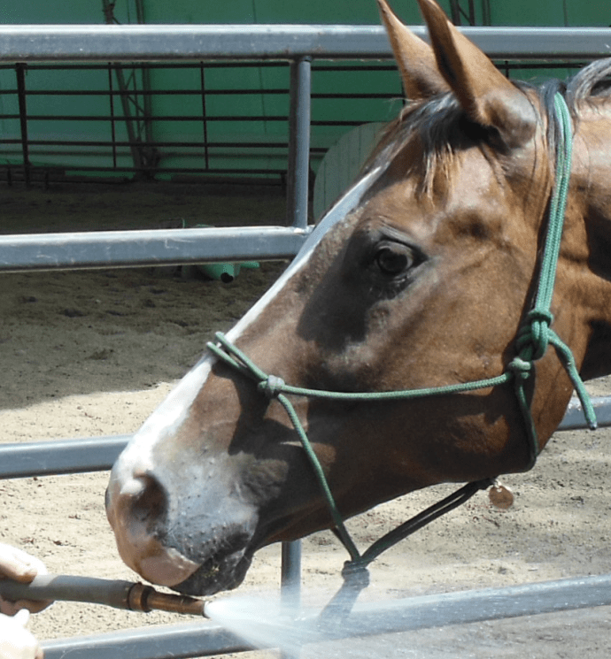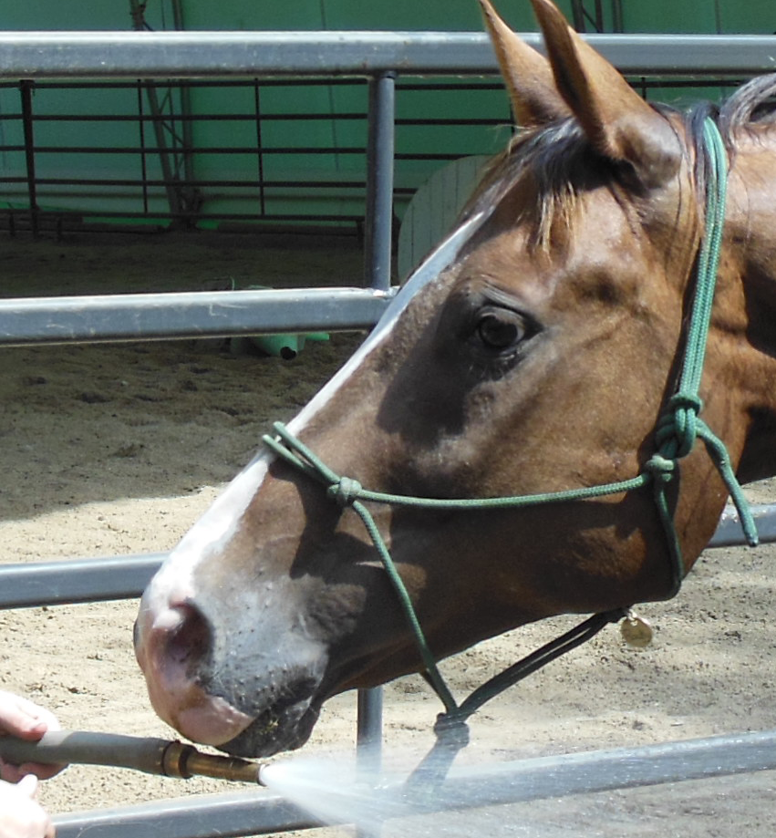 He had finished his personal breakfast bucket (beet pulp, grass hay pellets, joint and hoof suppies, Platinum), but second breakfast was being delivered to all of the pens and I promised that I’d have him home by Elevenses.