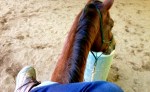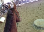 - Just trying to show that I’m on the horse and using one rein.