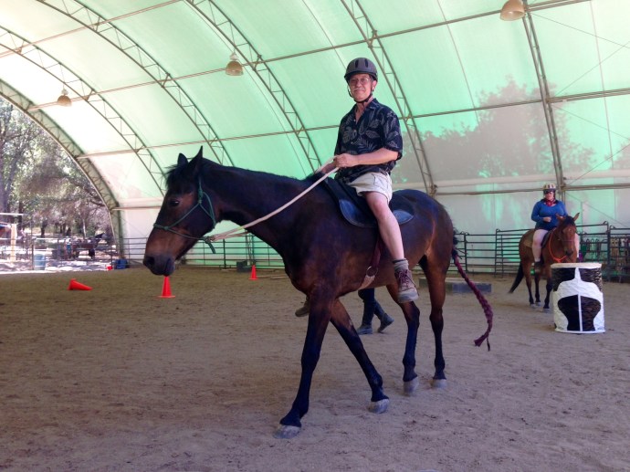 One of Barbara’s goals in our joint lessons has been to rekindle the fun and rebuild some confidence in the saddle. And part of doing that is remembering all the things that you already can do with skill and confidence, and allow yourself and your horse the chance to celebrate and play with all the progress you’ve made together. Doing that in the context of a lesson allows us to get creative and confirm that we’re doing the right things.