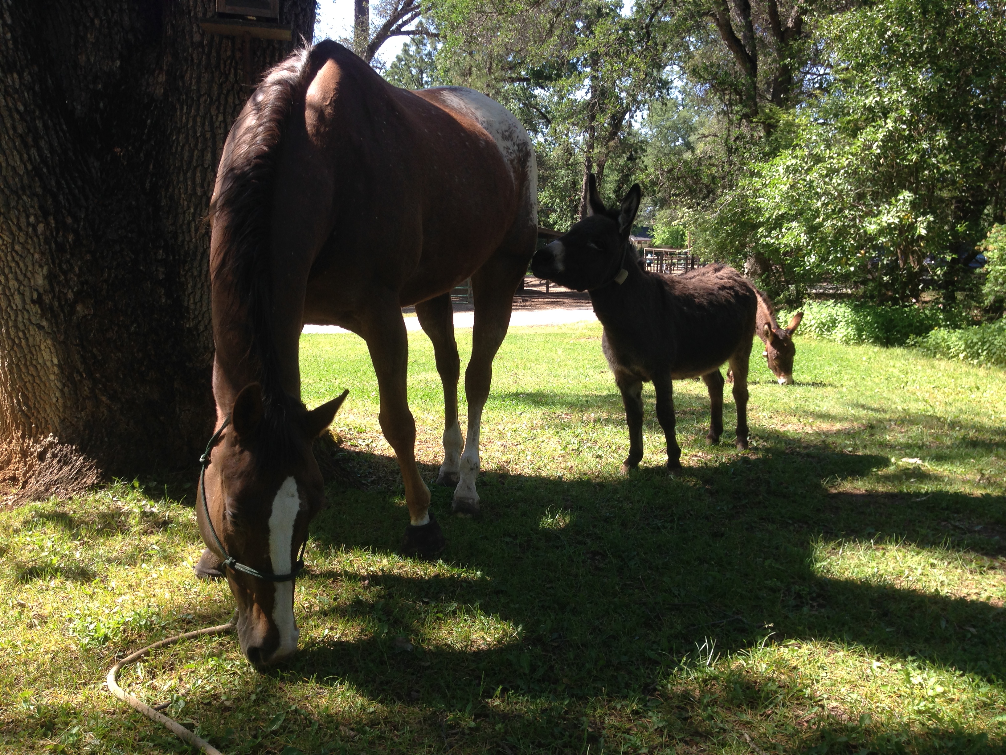 We had a challenge loading up to go home. What I learned was that he needs my help keeping himself straight and moving forward up the ramp. When he hesitates or thinks too much while on the ramp, he trips or slips, which then increases his hesitation on the next try. I learned to accept that it’s okay to lead him in rather than send him in. It’s okay to ask for help, like to have Seth and Jan fasten the butt bar while I stay up front and hand-feed Rocky.