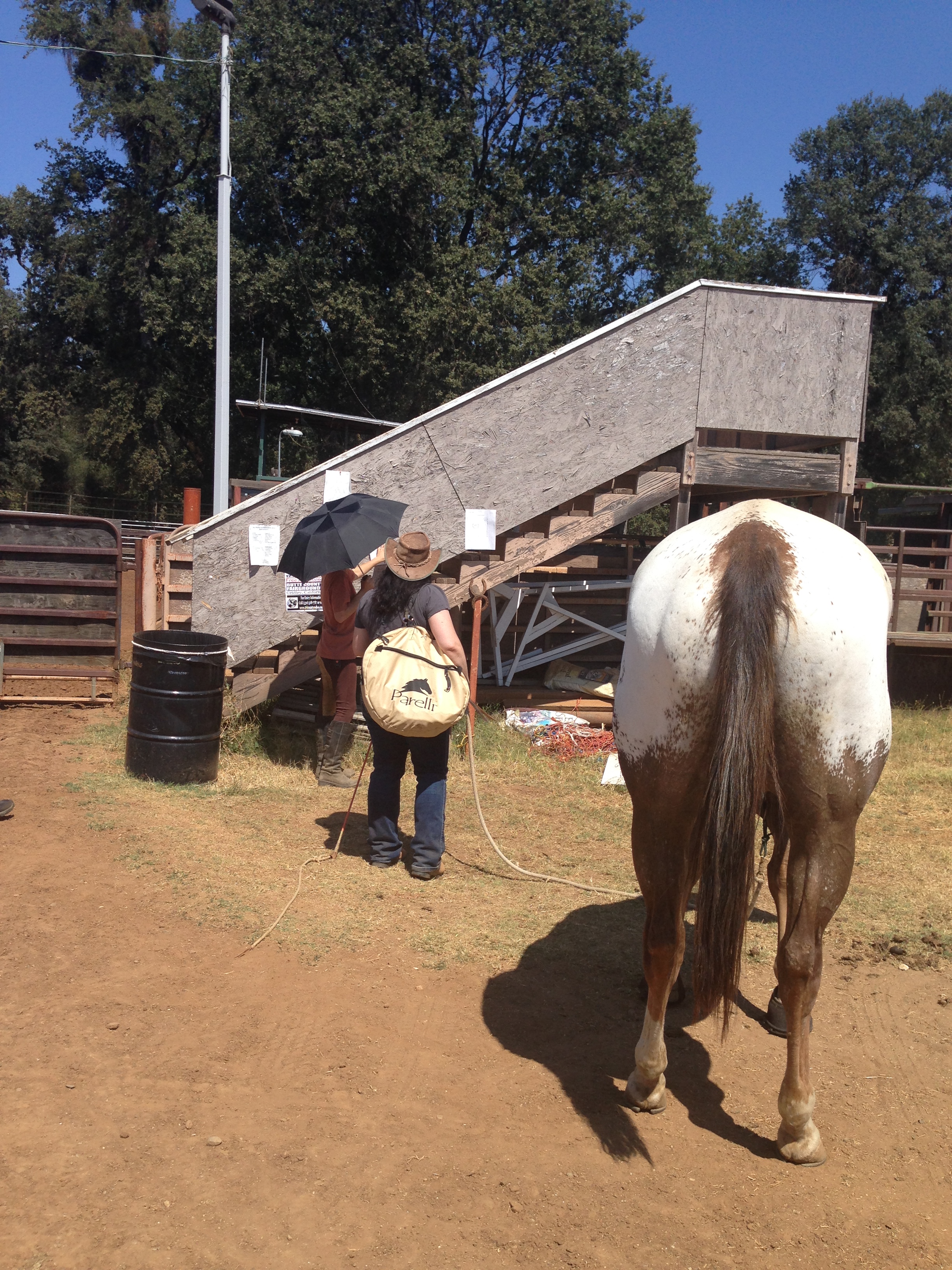 He did not panic at the new environment or at being the only horse. He did have a double-take when he saw Erin’s umbrella (for shade), so we walked behind her for a while. In a way, it was a nice focus for us, instead of looking around us for other things to shy about.